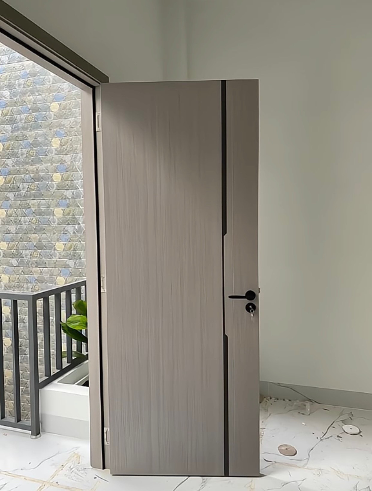 Cánh cửa gỗ carbon phẳng, trơn (không có hoạ tiết hoa văn):